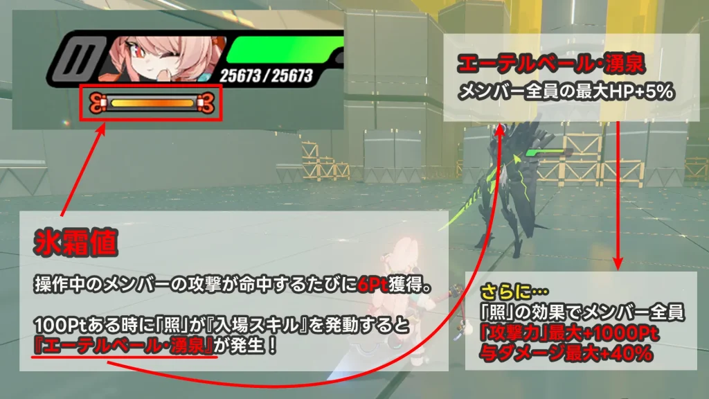 「照」は『入場スキル:霜奔る』を発動すると『エーテルベール・湧泉』を発動します。
